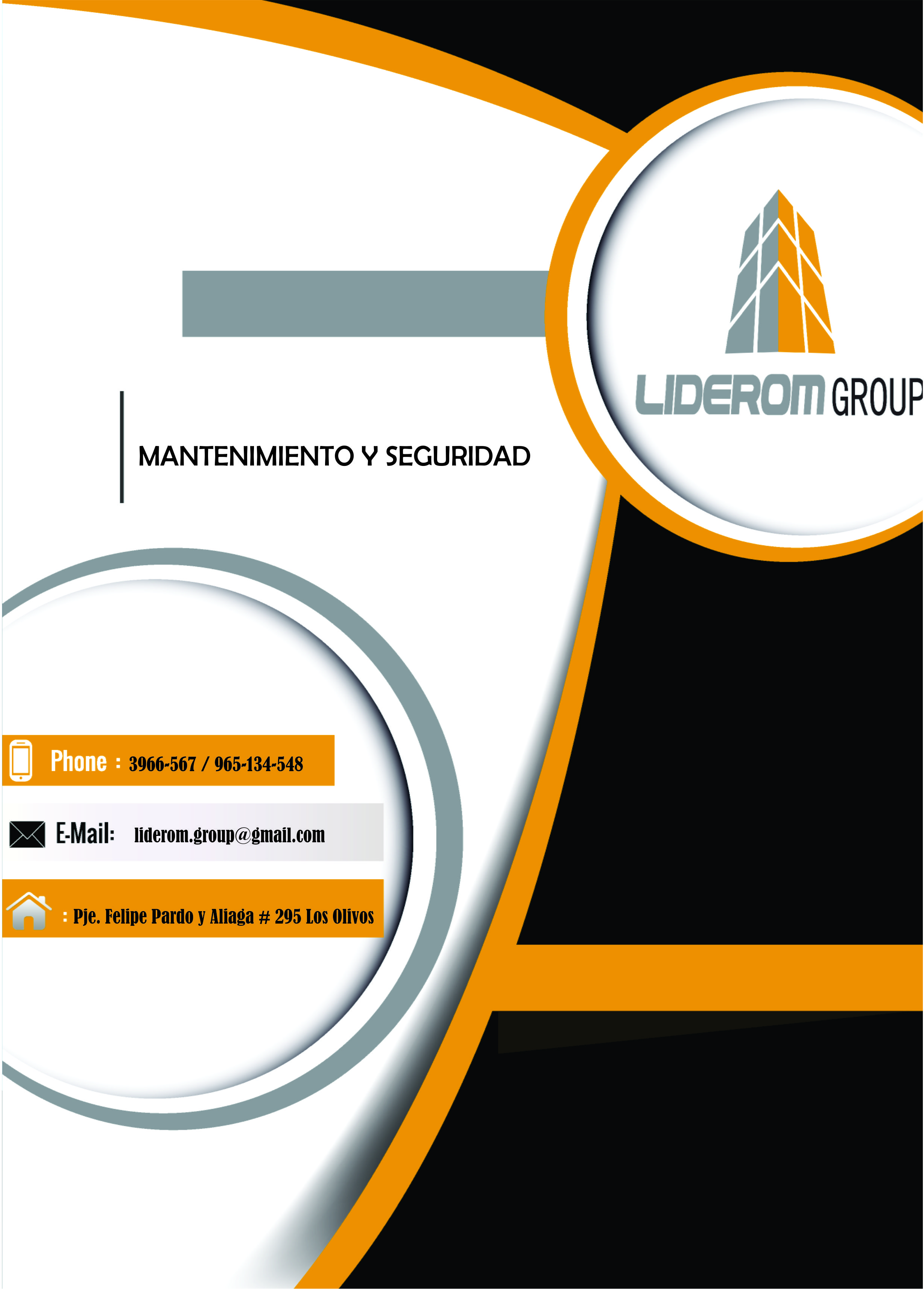 Es grato dirigirnos a ustedes, reciba un cordial saludo y así mismo el agradecerle considerarnos para presentarles la información de nuestra empresa. “LIDEROM GROUP” es una empresa que opera en el departamento de Lima brindando los servicios de Administracion de edificios, Vigilancia, Mantenimiento y Limpieza.